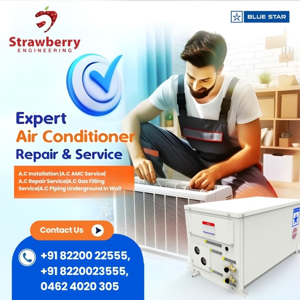 Ensuring a well-functioning industrial AC system is vital for productivity, comfort, and energy efficiency. Consequently, businesses in Tirunelveli choose Strawberry Engineering, the top-rated industrial AC installation company, for expert planning, installation, and maintenance services. Ultimately, with Strawberry Engineering, you gain a reliable partner who keeps your facility cool, efficient, and ready for business success.